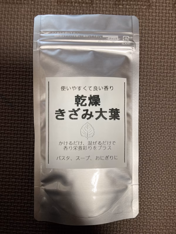 <味> とにかく香りがすごい。封を開封した瞬間から大葉の香りが充満します。 味ももちろん生の大葉と変わらない味わい、いやむしろ乾燥することで濃厚になっています。 生の大葉だと食べる前にわざわざ刻んだりする手間がありますが、この乾燥きざみ大葉はお手軽に使っていただけます。ほんと簡単おいしい! <栽培のこだわり> 栽培時は農薬を使わずに育てました。 大葉を植える前に農地の熱処理をする。加えて、植えた後は虫が嫌がる作物を近くに植えておく。そうすることで被害を極限にまで抑えることに成功しています。 <産地の特徴> 大葉ができたのは広島県の北部(三次市)になります。 広島県三次市は昼夜の寒暖差が激しく、大葉の成長にすごく適している場所になります。 昼夜の寒暖差がある場所で作物を育てると、昼間はしっかり光合成をして、夜間にしっかり休むことができます。これは作物の味をどんどんよくしていくことにつながっていきます。 大葉ももちろん例外ではなく、味も香りもとてもよく成長してくれています。 <食べ方> ピザ、パスタ、ご飯などにふりかけてそのまま食べるのはもちろんのこと、スープや炒め物などに一緒に入れて調理していただくこともできます。 大葉の香りが部屋中いっぱいに広がり幸せな気分になること間違いなし。 <製造秘話> なちゅbioの乾燥大葉は、実は最初自宅用でした。 誕生は、自分たちが一年中大葉を食べるために作るようになったのがきっかけです。 今では自分たちも納得の味と、使いやすさになっています。 ぜひ一度お試しください。