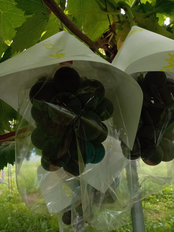 早生の大粒黒ぶどうで、その粒は500円玉大、皮から飛び出るように実が出てきてかつ、ジューシー!大人からお子様まで大人気です。当園も始めたころから推しです٩( ''ω'' )و