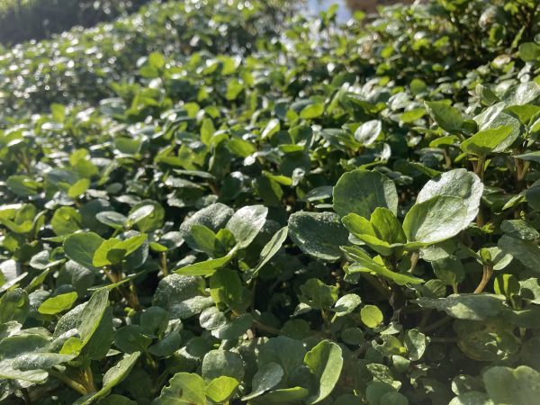 クレソンは春の花の時期が過ぎると一度姿を消してしまいます。梅雨を越えて徐々に大きくなったクレソンが、夏の太陽に負けずに成長して新芽をつけ始めました。