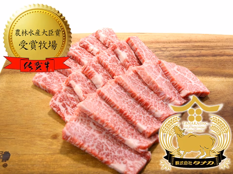 農林水産大臣賞を2度受賞した田中畜産の佐賀牛「たなか和牛」カルビ焼肉用500gです。