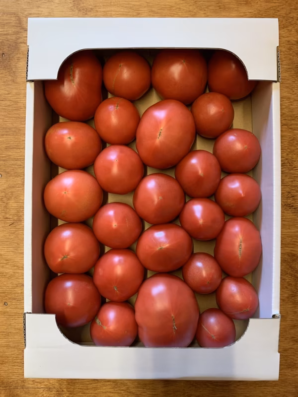 沢山のご注文並びに感想を送って頂き ありがとうございました。 今年のトマトも1日1箱 あと4箱限定となりました。 生食での販売は、終了となりますが、この後 来年まで 同じトマトを使用した無添加トマトジュースを販売いたしますので よろしければ御利用下さい。 トマトジュースを販売いたしますので、