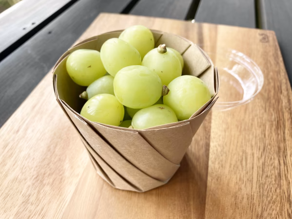 300g 4カップ入り 60サイズ箱 保存や食べるのに最適な一粒ずつカットした状態でお届けします。 カップ入りなのでそのまま食卓へ。 お友達やご近所の方とのシェアもおススメです! 美味しいくだものをおとどけする!を基本に、天候によるくだものの変化を観察しながら収穫しています。 お日さまをふんだんに浴びる南向き斜面で育った葡萄です。 美味しい時にお送りしたいため、配送日の指定は基本的にはお受けしておりません。また、常温での発送になりますので、発送翌日のお受け取り、到着後すぐの内容物の確認にご協力ください。