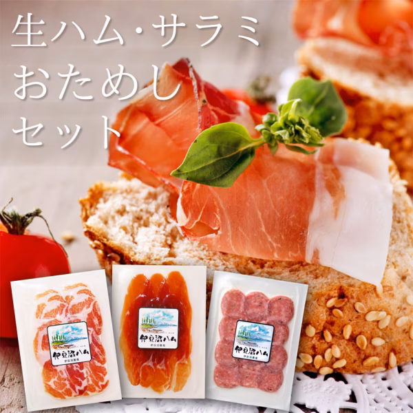 - <肩ロース生ハム> 豚肩ロース肉(宮城県産)、食塩、ブドウ糖、糖類(砂糖、水あめ)/酸化防止剤(V.C)、酸味料、発色剤(亜硝酸Na、硝酸K) <モモ生ハム> 豚モモ肉(宮城県産)、食塩、ブドウ糖、糖類(砂糖、水あめ)/酸化防止剤(V.C)、酸味料、発色剤(亜硝酸Na、硝酸K) <発酵生サラミ> 豚肉(宮城県産)、食塩、香辛料(小麦を含む)、ラム酒、乳酸菌/調味料(アミノ酸)、酸化防止剤(V.C)、発色剤(亜硝酸Na)
