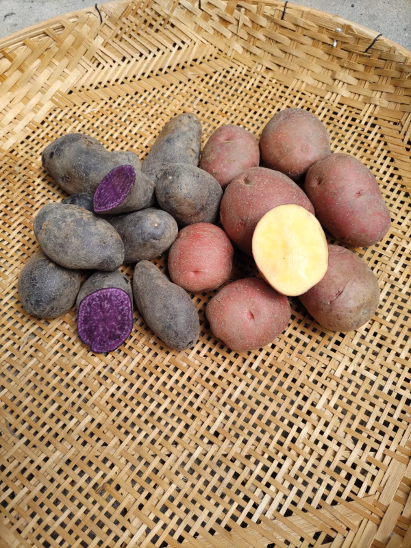 ▼品種・味の特徴 1.アンデスレッドは表皮が赤色で果肉が黃色です。粉質で加熱により甘みと旨味があります。2.シャドークイーンは表皮が黒系で果肉が紫色です。レシピも豊富で美味しいジャガイモです。