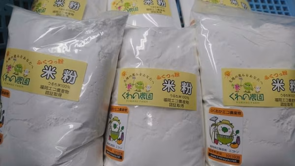 福岡エコ認証取得(減農薬・減化学肥料)のうるち米を100パーセント使って自家製粉しています。