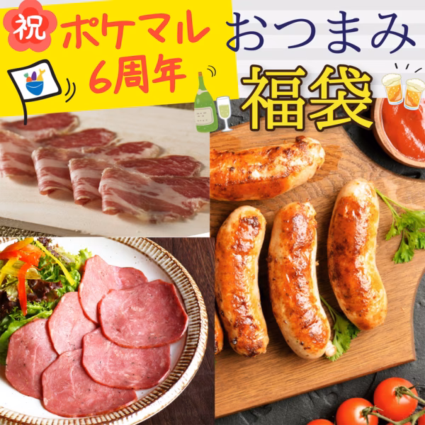 ポケマル6周年の記念&お客様への感謝の気持ちを込めて、お酒に合うお肉のおつまみが入った福袋をご用意しました!お届けする商品は何が入っているかお楽しみ(^^)