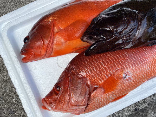 素潜りでの魚突きで捕獲しています。常に頭、エラ付近を狙うように意識していますが、体に撃つ事もあります。