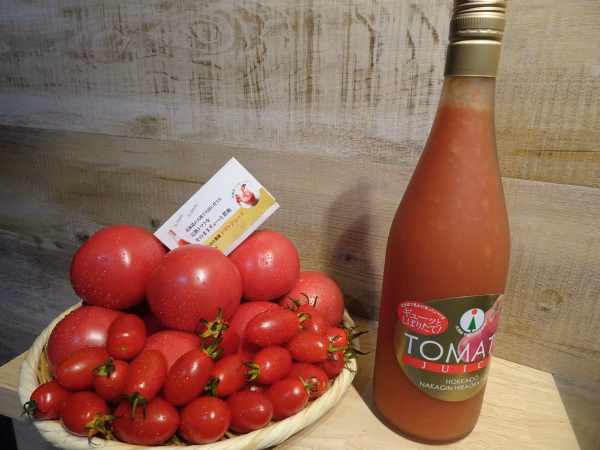 北海道の大地で大切に育んだ完熟大玉トマトとミニトマトをこだわりの配分で濃縮した自慢のトマトジュースです。フルーツのような甘みとすっきりとした喉越しで、お子様から大人まで幅広くお飲みいただけます!