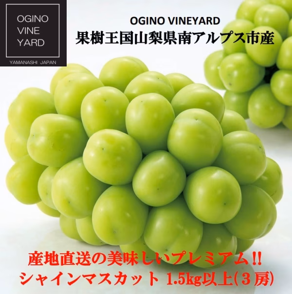 ▼商品概要 シャインマスカットは, 2006年に品種登録されたばかりで、 まだまだ新しい品種の自ブドウです。 安芸津21号と白南というぶどうを交配して誕生したシャンマスカット。 親である安芸津21号はスチューベンと マスカットオブ・アレキサンドリアから生まれた系統なので、 美しい外観と大粒の実、マスカット由来の芳醇な香り、 20度以上になることもあるという高い糖度を誇ります。 ▼品種・味の特徴 とっても甘くて、皮ごと食べられ、種がない。今大人気のシャインマスカット! マスカットの香りと味を残しつつ、皮ごと食べられ、しかも種がない、新しいブドウです。粒をまるごと口にほおばれるため、口いっぱいに濃厚な甘みと香りが広がります。 是非この機会に『とっても甘くて、美味しいシャインマスカット』をご堪能下さい。 ▼数量、分量の目安 1.5kg以上 3房 ▼栽培/生産方法、こだわり 山梨県南アルプス市は豊かな自然と澄んだ空気、そして南アルプスからの水に恵まれ、果実作りには適した環境です。 ブドウ栽培において、より良いブドウを作っていくためには土作りがもっとも重要です。ここのブドウ畑では土壌分析を行い、どの栄養成分が不足しているのかデータに基づいて、与える肥料の量や内容を変えています。また、堆肥や細かくした稲わらを撒いたりすることで、土を軟らかくしています。ブドウの木には意思があるので、土の力を高め、健康な根が育つ環境を整えてあげれば、それにしっかりと応えてくれ、品質の良いブドウを生み出してくれます。 愛情込め、丁寧に時間をかけて育てたぶどう達です。 化学肥料を使用しておりません。安心して召し上がっていただけます。 ▼注文に際しての注意点(配送方法や納期指定など) ※画像はイメージです。 ※お届け日の指定、時間帯の指定は申し訳ないですが、お受けできません。 ※天候や収穫状況によりお届けが遅れることがあります。万が一手配ができないときは別途ご連絡させていただく場合がございます。 ※本品は”押し””キズ”等、箱毎に検品を行い、梱包には細心の注意を払い出荷致しますが、輸送中の振動などを原因とする若干の”押し””キズ”等が入る場合もありますので、誠に恐縮ですがご理解の上、ご依頼下さい。