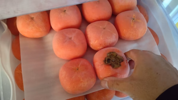 熟すると甘みが増しますが、柔らかくなり発送が困難になりますが、甘みが増すことを逆手にとり、冷凍でも庄内柿は美味しく食べられます。糖度は農協公式には14度ほどですが我が家の完熟は20度近くになります。