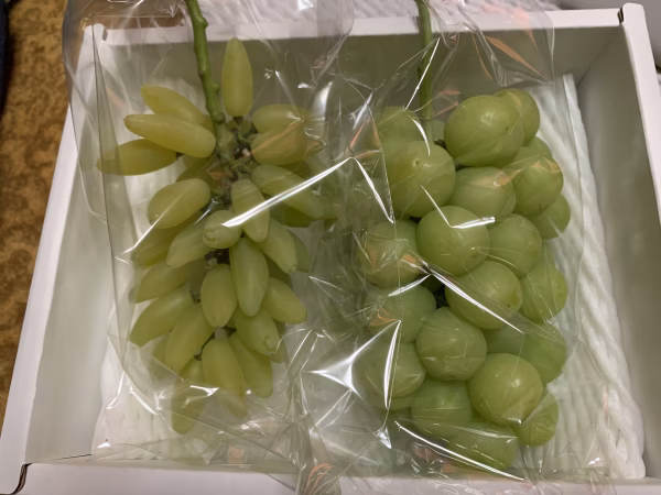 桃太郎ぶどうは皮ごと食べられるぶどうの中で、とても皮が薄く歯応えの心地よい酸味の少ないぶどうです。ゴールドフィンガーはとても糖度が高く甘さが際立ちますが、後味スッキリの一度食べたらクセになるぶどうです。