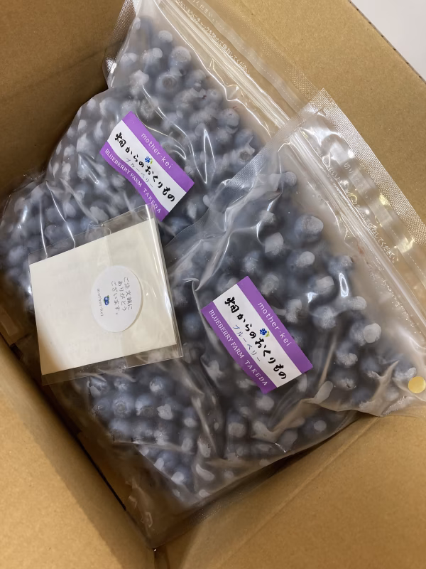 武田ブルーベリー園はしまなみ海道の愛媛県側の玄関口今治市にあり、瀬戸内海の温暖な気候に恵まれ作物がよく育つ環境にあります。生産者自らが安心して食べられるものを作りたいという思いで、2008年にブルーベリー栽培を始めました。土耕栽培で自然に近い環境で育てているのが特徴です。 もちろん、化学農薬・化学肥料・除草剤を使用しておりません。 ヨモギの緑汁・黒砂糖・米糠・魚骨粉・油粕を手で混ぜ合わせ発酵させて作ったぼかし肥料で育てております。 収穫後、新鮮なうちに冷凍させていますので、そのままシャーベット感覚でいただくかヨーグルトに混ぜてお召し上がりください。 粒が大きく味もしっかりしております。 収穫時期は6月下旬頃から9月上旬迄です。一日でも早く皆様にお届けしたいのですが、真夏は気温が高いため輸送中に解けやすくなります。少しでも良い状態でお届けしたいので、少し涼しくなる9月中旬頃から発送を開始したいと思っております。今しばらくお待ちくださいませ。 ※2022年9月1日 価格変更のお知らせ  2022年2月1日より販売手数料が15%から20%に改定されました。  最近の急激な物価上昇に伴い諸材料費も上がってきております。  ブルーベリー栽培にも値上げの影響が出てきておりますので、このたび  やむなく価格を上げさせていただきました。こだわりの栽培方法で  美味しいブルーベリーを皆様にお届けできますよう頑張ってまいります  ので、これからもどうぞよろしくお願いいたします。