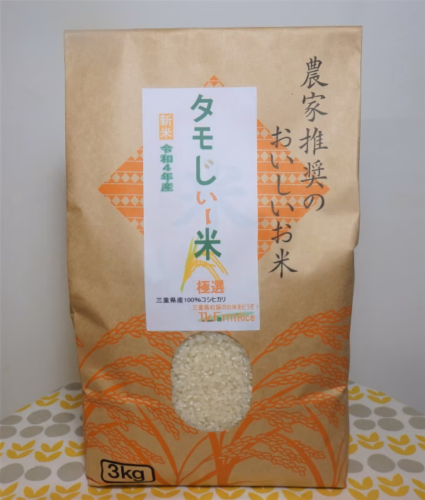 令和4年産新米【白米】が間もなく収穫の時期を迎えます。 令和4年9月から販売可能となりますので、是非とも、定期のご購入はいかがですか。毎月1回発送いたします。 三重県松阪市産『タモじぃー米』極選は、もっちり甘い、コシヒカリ100%のお米です。 自家精米ですので、ご注文を頂いてから少量ずつ精米をいたします。 このため新鮮な白米を一年中お届けいたします。 思わず「もう一杯ください!」とか、おにぎりや弁当など冷めても美味しく頂けるとお客様からお聞きしています。 『タモじぃー米』は、できる限り農薬を使用せずに栽培を行っています。 ご愛顧いただいていますお客様にさらにご安心していただけるよう、 残留農薬検査(200成分)を例年通り実施しています。この検査を10年以上続けておりますが、毎年の結果は、全ての項目で「N.D.検出せず」でした。 今年の令和4年産の収穫終了後には、改めて検査を実施し、結果が出次第に残留農薬検査書を送付いたします。 本年は、梅雨明けが6月下旬に発表され、例年より異常にはやく、稲の成長に大きく影響するのではと非常に心配をしていました。7月になってからは晴天が続きつつも適当な降雨もあり、順調な成長となりました。 江戸時代以前から当地で引き継がれてきたお米づくりをタモじぃーが引き継ぎ、その思いや栽培ノウハウを私たち家族が受け継ぎました。 なお掲載写真は、白米3kg入りです。 ▼もっと読む▼ 『タモじぃー米』とは、もっちり甘い、コシヒカリ100%のお米です。 生産面積は、約3.3へクタール(1万坪)です。 一度、お気に入りいただければ、ご家族構成に応じ、年間を通じてのお届けをお約束させていただきます。 こだわり①[恵まれた水と土づくり] 紀伊半島中央部を水源として伊勢湾に流れる三重県の清流「櫛田川」の豊富な水に恵まれています。 味に直結する土づくりからこだわったお米づくりをしています。 家族が安心して食べられるように、可能なかぎり農薬を使用しないで栽培しています。 こだわり②[品質管理] 収穫後は、玄米の水分量を最適の15%とし、温度15℃、湿度一定の冷蔵庫にて保管し、適切な品質管理のもと、お米の美味しさの維持に努めています。 こだわり③[検査もしっかりやっています] 毎年、玄米の残留農薬検査を実施しており、令和2年産も農薬200項目「検出せず」の結果でした。 『タモじぃー米』は2kg、3kg、5kg、10kgを出品中です。 #おこめ#令和4年の新米