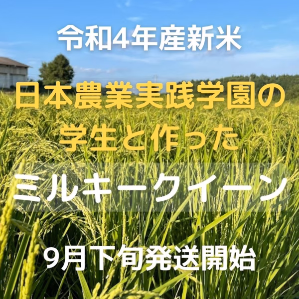 【令和4年産】【新米】日本農業実践学園のミルキークイーン ★9月下旬からの発送開始予定です。ご注文順の発送となります。 ▼自己紹介  創立93年の私立農業専修学校です。近年は農業を志す社会人の入学も増えました。自ら田畑を開墾し、用水を整備した歴史ある圃場で、お米、野菜、牛、豚を育てています。 師弟同行は、当校の教育の基本でもあります。学生とともに作った作物を、ぜひ皆さんにお届けしたいと思っています。 ▼商品概要 学校で育てたお米を、学校で乾燥、脱穀し、精米したてを発送しています ▼品種・味の特徴・食べ方 ミルキークイーン コシヒカリと比べて肌目が白く、ちょっと小粒です。米本来の甘さ、もっちり感があり、冷めても美味しいことからお弁当などにもよく使われています。後発品種ですが、最近ではコシヒカリを上回る人気のお米です。 飽きのこないスッキリした味。お水を少し少なめに炊くと食感がパリッとします。 ▼数量、分量の目安 白米 ▼栽培/生産方法、こだわり 普通より大きく育てた苗を、間隔を大きくとって植える、大苗疎植という手間のかかる育て方をしています。 栽培中は、殺虫剤を使っていません。 ▼注文に際しての注意点(配送方法や納期指定など) 9月下旬からの発送予定です。 ご注文順に発送いたします。 ▼無洗米もお選びいただけます。 ▼分つき米も選択可能です。ご注文後、7分搗き、2分搗きをご連絡ください。分搗き発送は多少時間をいただきます。 ▼玄米はポリ袋包装になります。