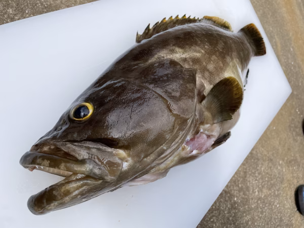 今朝の素潜り漁で海に潜り銛で突いたクエです。