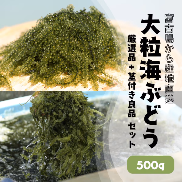 宮古島産 海ぶどう【厳選品・良品茎付き】食べ比べセット 500g(タレつき)