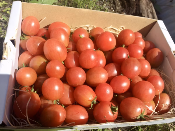 ・天候の影響と輸送の段階で、割れ(裂け目)が入っているトマトが数個混ざる可能性があります。毎回5-10個ほど多めに入れていますので、ご了承ください。