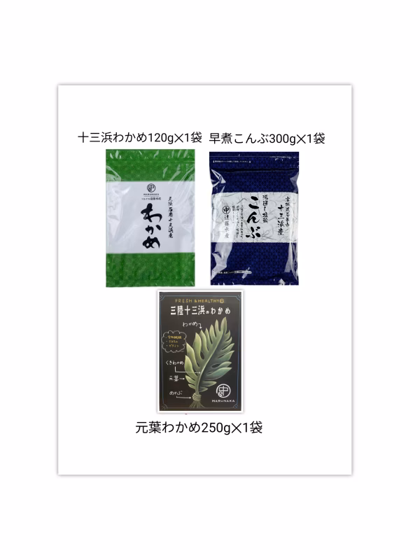 ●十三浜は東北地方最大の河川「北上川」の終着点で世界三大漁場と呼ばれる「三陸沖」に面した宮城県石巻市の小さな漁村です。山から水脈を通じて栄養分が川に流れ込み、十三浜に流れ着きます。この豊富な栄養分で育ったわかめは旨みが増し、さらに十三浜の荒波にもまれ育つことでしっかりとした歯ごたえを生みだします。旨みあふれる味わいと食感は、この真水と海水のバランスがちょうどよい十三浜だからこそと、㊥マルナカ遠藤水産では生産から加工、販売まで、こだわり、誇りを持ちお客様にお届けいたしております。 ☆肉厚でシャキシャキ十三浜わかめ☆ 十三浜の荒波で育ったわかめは肉厚でシャキシャキとした食感と磯の香が特徴です。塩分も27%以下にすることで塩抜きも早く簡単です。 塩抜きして、そのままサラダや酢の物、お味噌汁などでお召し上がりください。 塩抜きはボールなどにたっぷりのお水を入れ1~3分流水でふり洗いしながら塩抜きしてください。 ☆十三浜早煮こんぶ☆ 塩抜きして、結び昆布、お煮しめ、おでんなどでお召し上がりください。 ☆元葉わかめ☆ わかめの根元の部分でコリっとした食感も楽しめるわかめです。 ▼注文に際しての注意点(配送方法や納期指定など) 保存方法は冷蔵か冷凍となりますが発送の際は常温でお届けいたします。 常温1週間程度でしたら品質、安全性に変わりありません。
