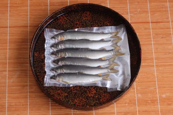 体力が回復した元気な鮎の状態で氷締めし、真空冷凍しました。
