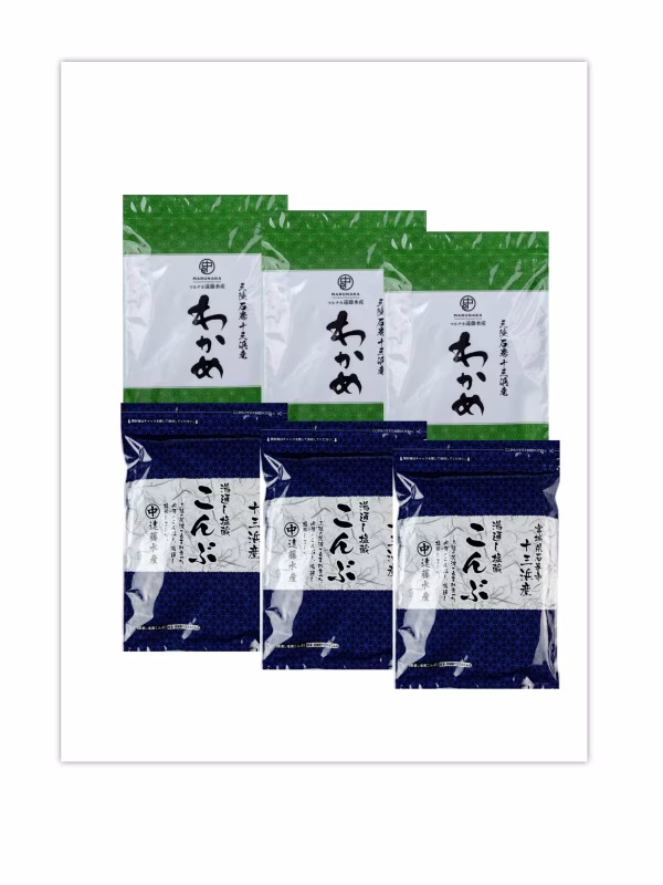 ●わかめ 名称:湯通し塩蔵わかめ 原材料:わかめ(十三浜産)、塩 内容量:120g ●こんぶ 名称:湯通し塩蔵こんぶ 原材料:こんぶ(十三浜産)、塩 内容量:300g 製造者:宮城県石巻市北上町十三浜字大指89-2 ㊥マルナカ遠藤水産 遠藤俊彦