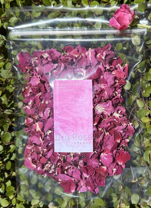 手作業で摘み取ってからひとつひとつ花びらにして、濃いピンクの色合いを残しゆっくりドライにしています。