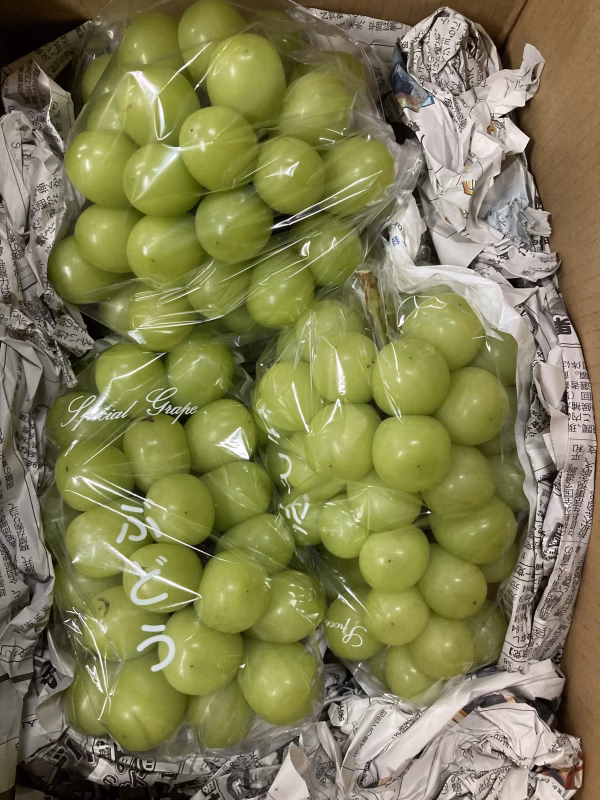 大房800g〜900g前後で3房入れて2.5キロ以上にして発送します!大房ですが、裂果した粒を抜いて穴が空いたり、形がイマイチ、ちょい割れやキズがある家庭用のシャインマスカットが入ります。裂果した粒を抜いて穴が開いたり、形や粒揃いがイマイチですが、味はとても美味しいです😊