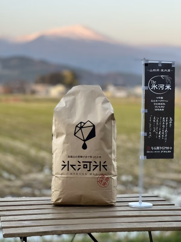 当店で販売している『氷河米』とは、鳥海山の雪解け水と大地のミネラルをたっぷり含んだ水で育ったお米です。