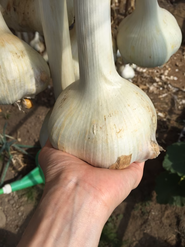 7月初旬に収穫したジャンボニンニクを乾燥させたものです。今年が最後の販売となり、来年以降は葉にんにくのみとなります!