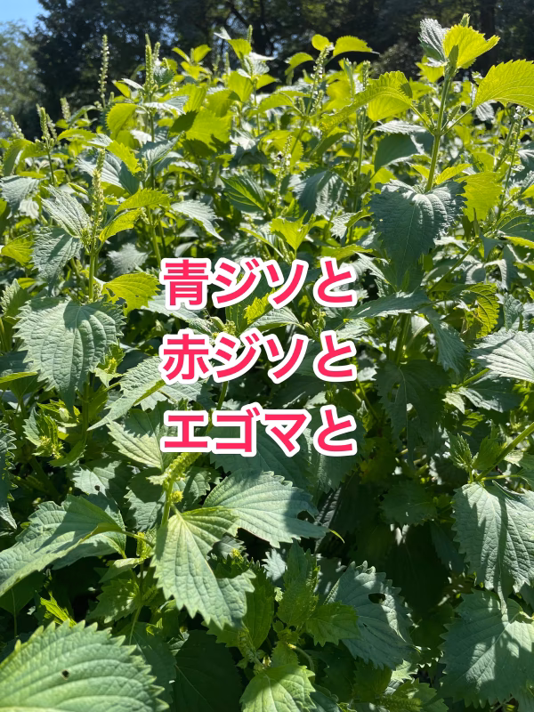 ただいま農園では、大葉(青紫蘇)、赤紫蘇、エゴマがワサワサ元気に生い茂っています。