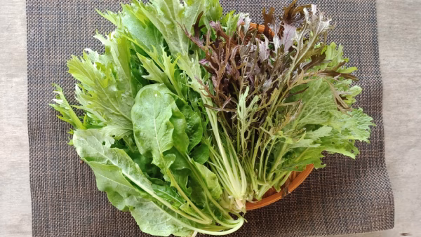 からし菜はサラダを華やかにしてくれ、