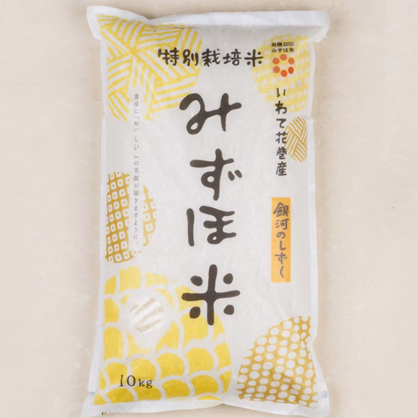 有機みずほ米:無農薬・無化学肥料で栽培しました。弊社で栽培した”銀河のしずく”で、基準に達した選りすぐり”有機みずほ米”をお届けします。和紙調包装で贈答品にも対応出来ます。