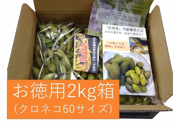 [作州黒]は丹波種という品種で岡山勝英地区の黒豆ブランドで一般的な枝豆と違い大粒で甘みがあるのが特徴です!