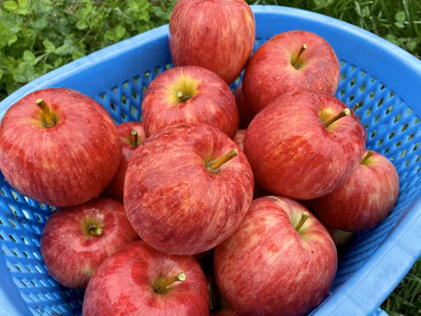 キズ(栽培中に風などに揺られて枝に擦れてしまった際についたものや、収穫時についてしまったもの)やサビ(皮の表めにザラザラした模様のようなもの)、日焼けなどがあり、見た目は少し良くないものの、味重視のりんごになります。