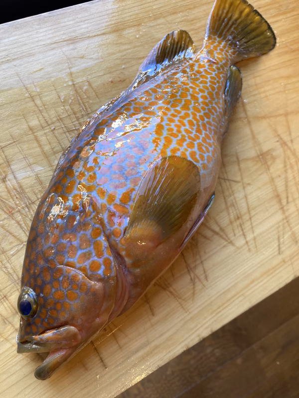 越前海岸沖で朝獲れ釣りもののキジハタ「福あこう」になります。