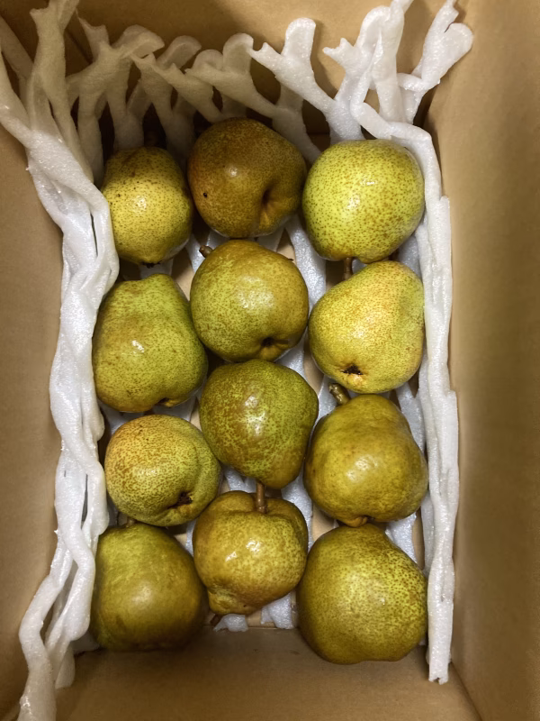 写真位の一個200g前後の食べきりサイズのラフランスわ5キロ箱に入れます😄