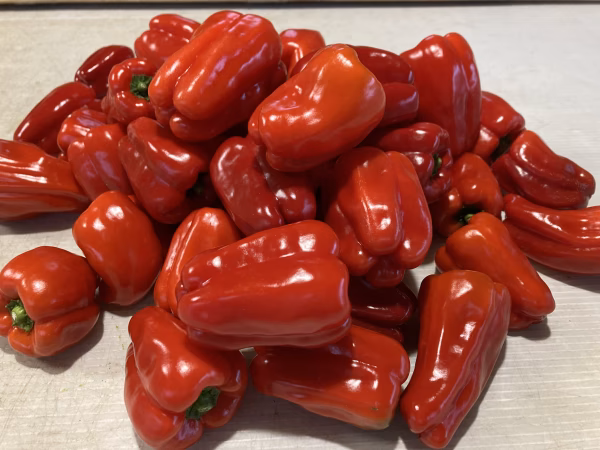 緑ピーマン時点でほんのり甘みの乗っているうちのピーマンが赤く完熟したものですので甘いです。