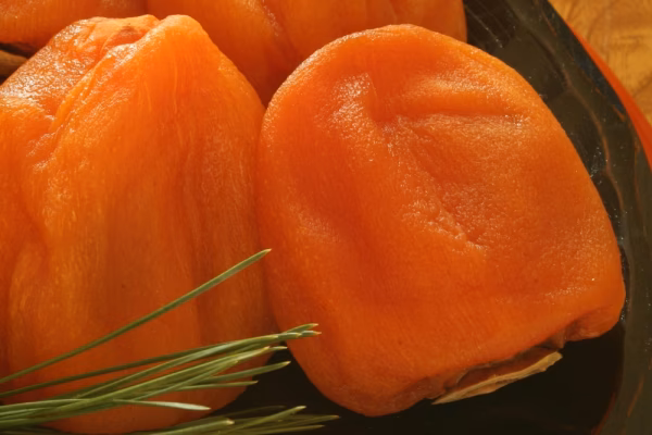 一般的には干し柿と言われ、私たちの産地では、枯露柿とあんぽ柿に大別されます。あんぽ柿は、乾燥歩合50%程度、中が柔らかい状態で出荷されます。漂白・カビ防止を目的に、硫黄燻蒸(いおうくんじょう)という工程を踏み、後の天日干しで、硫黄は放散させます。