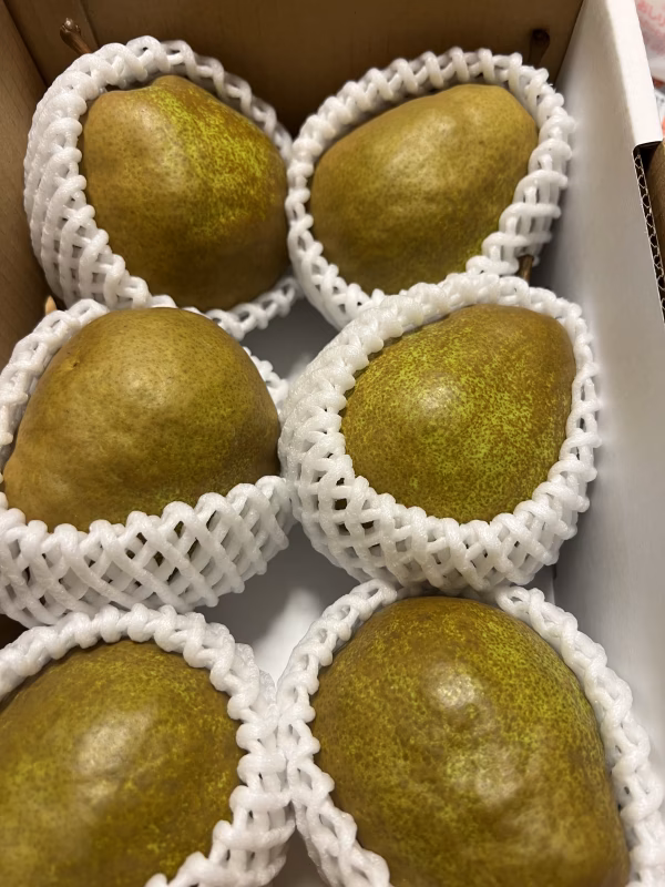 メロウリッチは西洋梨の中でもとくに糖度が高く、約16~17度。ラ・フランスの糖度が約12~13度なので、メロウリッチがかなり甘いです。しかも、ただ甘いだけでなく、ほどよい酸味も感じることができるため、バランスのとれた味わいが、絶品です。