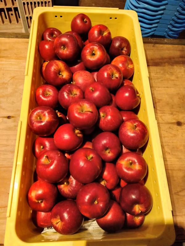 ▼自己紹介 初めまして、こんにちは!長野県の北、寒さ厳しい環境により、甘くて硬いりんごの産地として定評を頂く飯綱町にあるMARUYAMA農園です。農園としては私で三代目ですが、病に倒れた二代目から突然引き継いだのが五年前。右も左もわからずに継いだ農園ですが、毎日、子育て同様に試行錯誤しながら奮闘しております。まだまだ未熟者ですが、消費者の皆様に美味しくてご満足の頂けるものをお届けできるようにがんばります! ▼商品概要 小玉~超小玉サイズ 直径5〜7cm程の大きさですが、少しだけ食べたい方やくし切りにしてそのまま煮てアップルパイの具にしたり、コンポートにするなど、小さいながら活用することができます!色の濃い品種ですので、りんご飴にしてみてもキレイな気がします!サビのある物、キレイな物が混合しています。 ※ツヤがありますが、ワックスを塗っているわけではありません。 ▼品種・味の特徴・食べ方 紅玉 甘酸っぱい味が特徴 そのままも良いですが、キレイな色合いがで皮ごとアップルパイやジャムになどに加工しても楽しめます。 特徴として、収穫後も追熟がなされ、星と言われる黒い斑点が現れます。追熟された方が酸味がまろやかになり美味しいのですが、果肉が軟化し星が出やすいのでご注意ください。 一つ一つ確認をしながら梱包致しますが、目立つキズなど見落としがありましたら申し訳ございません。 経費削減のため、薄い段ボール使用。上下に緩衝材を使用しておりますが、輸送時にりんごに押しキズができる可能がございますが、何卒ご理解ください。 ▼数量、分量の目安 3kg程度 20玉前後 約 10玉ずつ程度を果物用のビニール袋に入れたものを2袋+箱に入るだけ隙間に入れます。 ▼栽培/生産方法、こだわり 規定よりも農薬は少なく、除草剤はなるべく使わずにしたいとビーバーと乗用車草刈機と鎌を使ってせっせと草を刈り、時にはやりきれずに草丈のある園地になることもありながら、栽培をしております。 ▼注文に際しての注意点(配送方法や納期指定など)