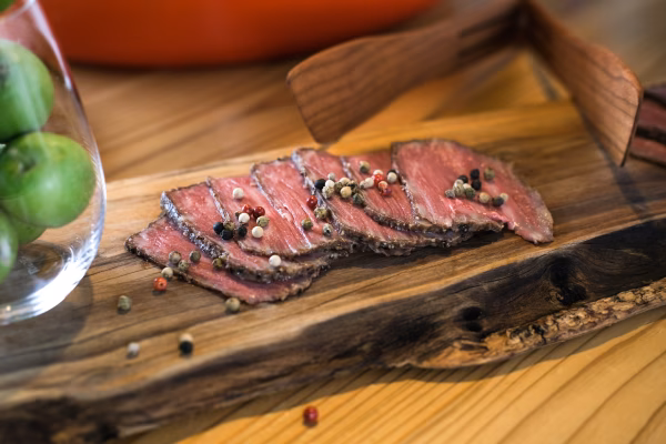 足利マール牛の加工品が遂に登場!足利マール牛の強みを生かしたローストビーフが出来ました。赤身に旨味がぎゅっと詰まった部位を使用し、噛めば噛むほど味が出るローストビーフで自信作です。ホームパーティでも手土産にも最適です。