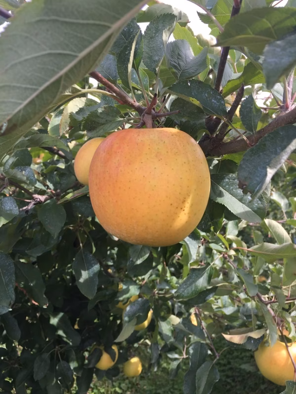 甘味、香り、歯ごたえ抜群の黄色いりんごです。とてもクリーミーで、りんごと思えない食感です。樹上で完熟を見極め収穫しております。