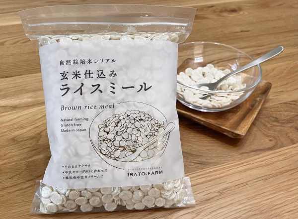玄米を加水加熱によって糊状(アルファー化)にし、その後乾燥させて糊化を固定したもの。【玄米仕込みライスミール】はそれを乾燥粉砕ののち、成型してシリアル状にしています。