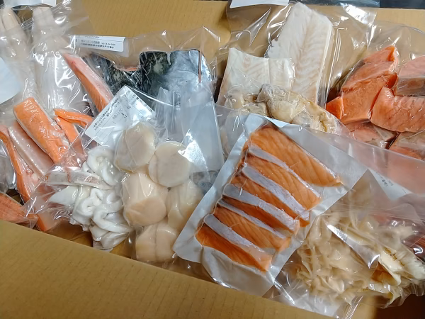 サケ、ヒラメ、ホッケ、イカ、タコ、ホタテなどなど毎月10品前後の詰め合わせになります。