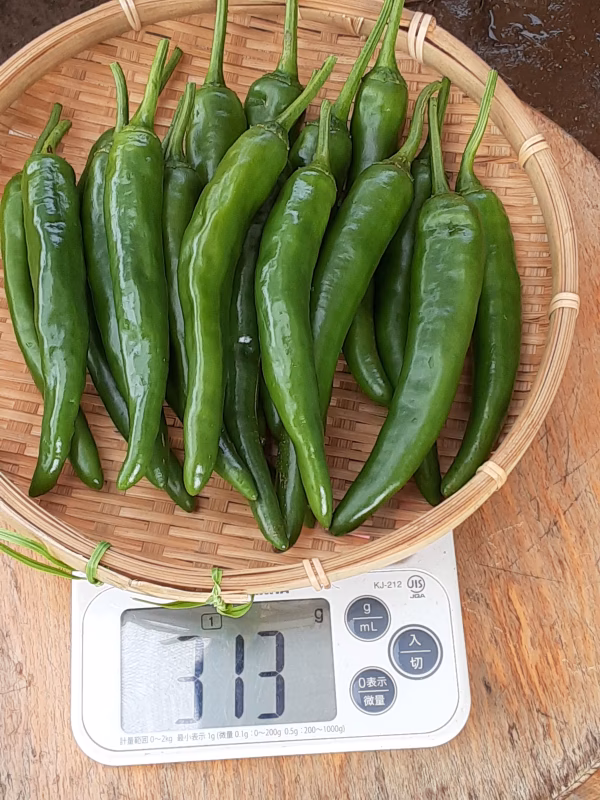中辛青唐辛子: 醤油漬け・三升漬け、柚子胡椒、唐辛子味噌の他、炒め物や焼肉のタレにもグッドです。(我が家はカレーの辛味付けにも使います)