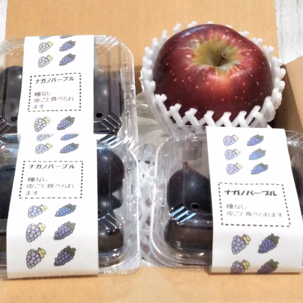 ナガノパープル粒パックを3パックとりんご1個