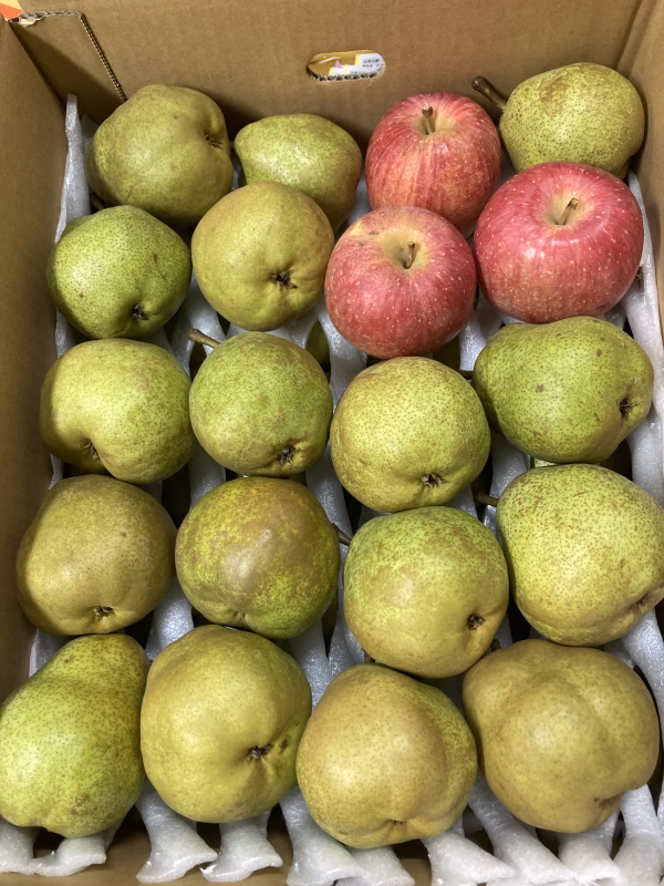写真位の一個200g前後の食べきりサイズのラフランスわ5キロ箱に入れます😄
