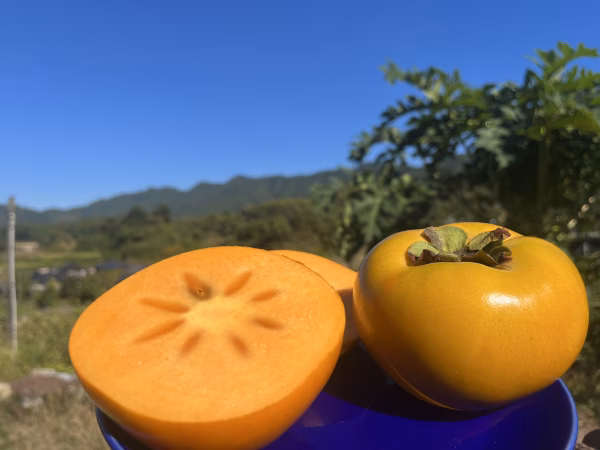 「条文」は、完熟した柿に見られる特徴で、糖度が高くおいしい太秋柿の目安になります。けして傷や傷みではありませんのでご安心ください。
