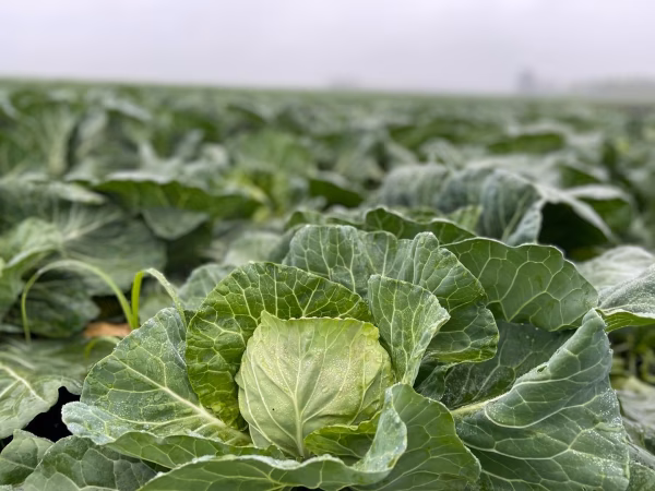北海道・十勝の幕別町明野は朝になると霧が降りる地域です。この朝露の適度な水分と十勝晴れと言われるほどの長い日照時間で光合成することにより、中身が詰まった甘く、水々しいキャベツへと育ててくれます。