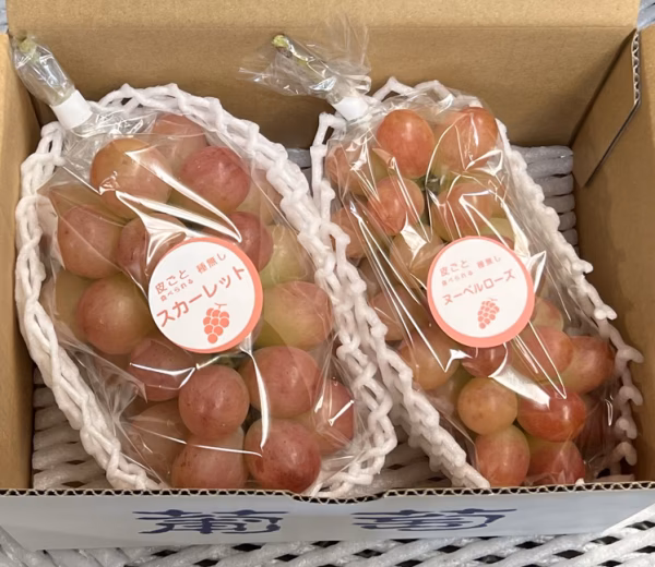 こちらは長野県の北信で育ったシャインマスカットを親に持つ2種類の赤ぶどう「スカーレット(訳あり)&ヌーベルローズ」の食べ比べセットです