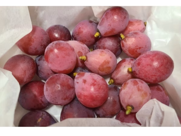 - 今年は、やや色付きが弱く白っぽい粒も目立ちますが、糖度も乗っていて美味しく召し上がって頂けると思います。